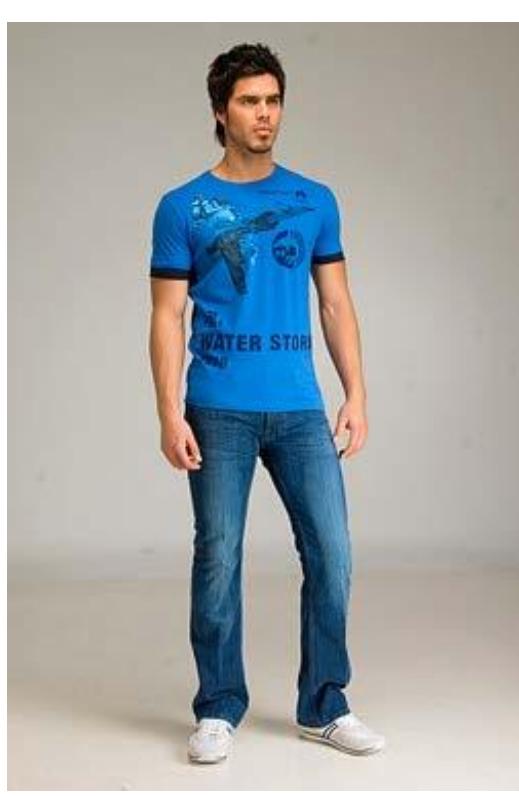 以上是不合身牛仔裤的例子。下面是合身牛仔裤和T恤的例子: